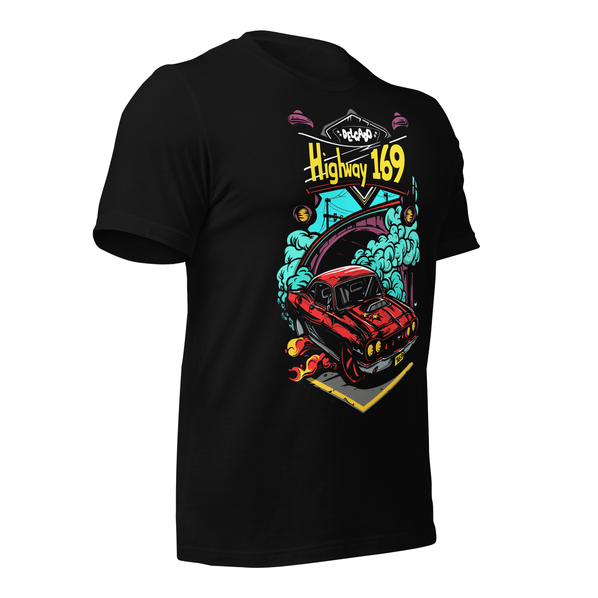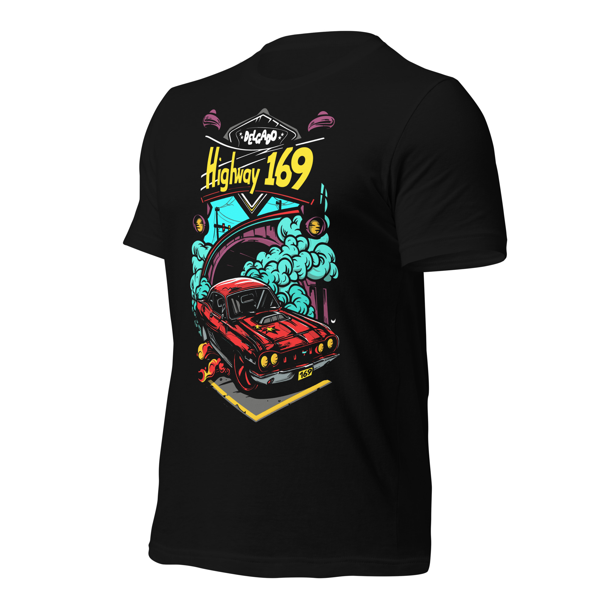 The Steady Pushin™ Highway 169 Black Tee brings bold color, retro street energy, and everyday comfort into one standout graphic t-shirt. Featuring a vivid highway-inspired car design on a classic black tee, this piece is built for those who like their style loud, clean, and impossible to ignore.
