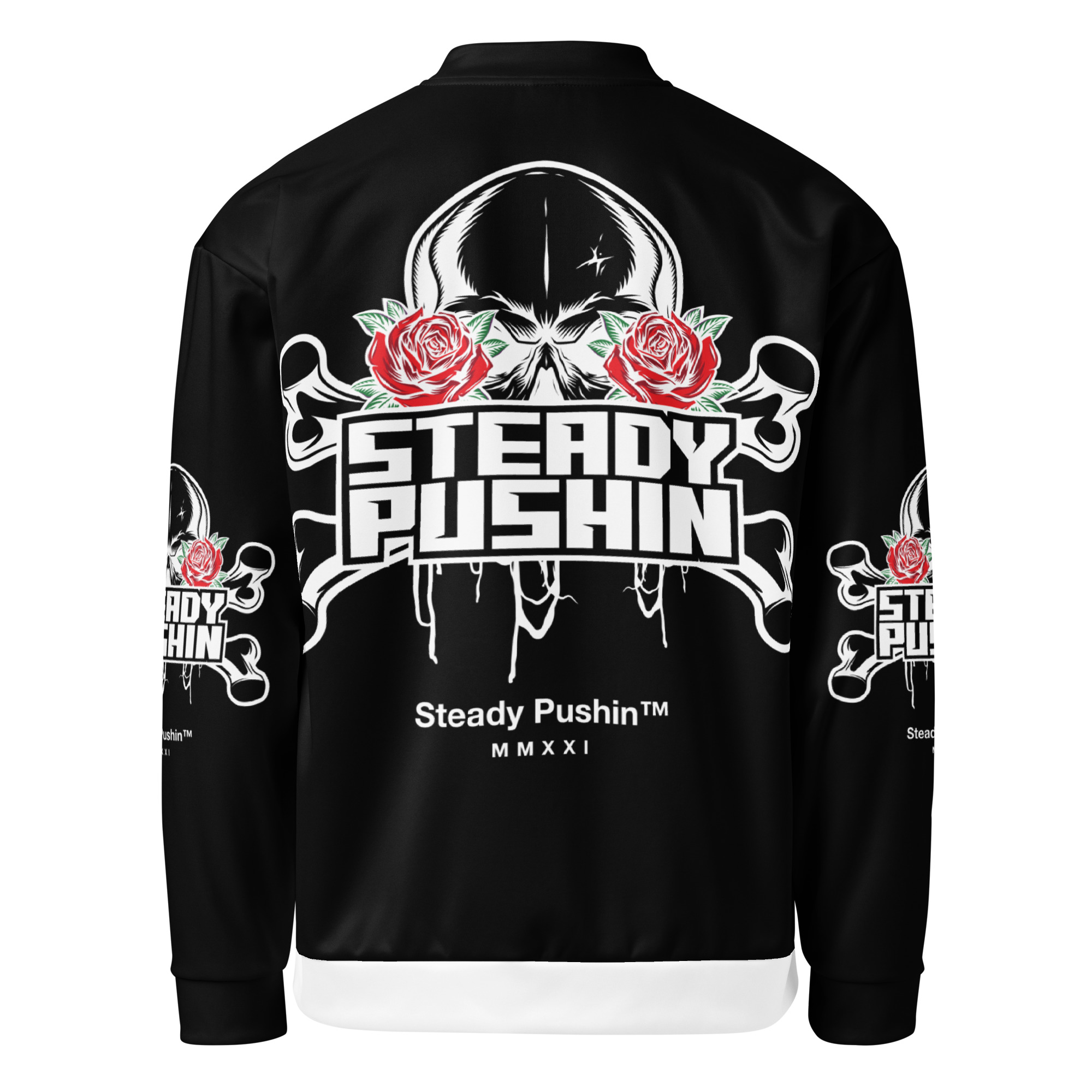 Whether you are layering it for cool nights, styling it for a streetwear fit, or adding a standout piece to your rotation, the Steady Pushin ™ Skull Bomber Jacket delivers a strong look without sacrificing comfort.