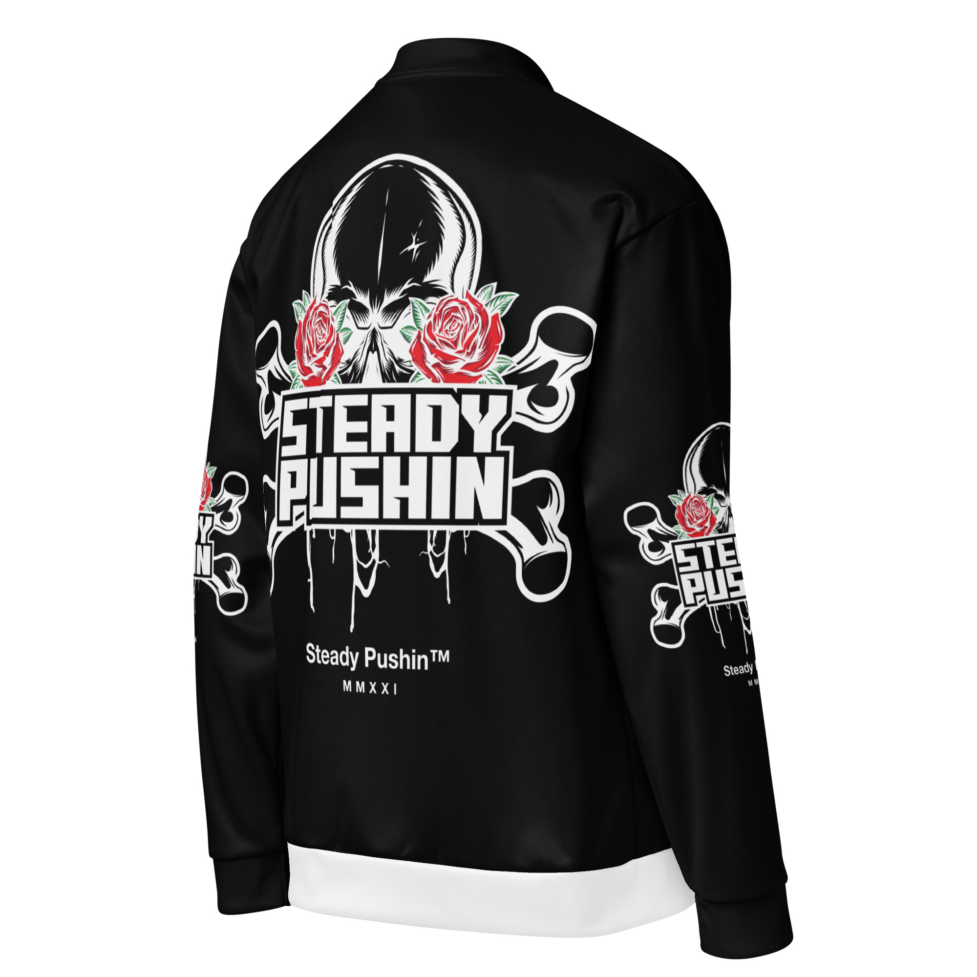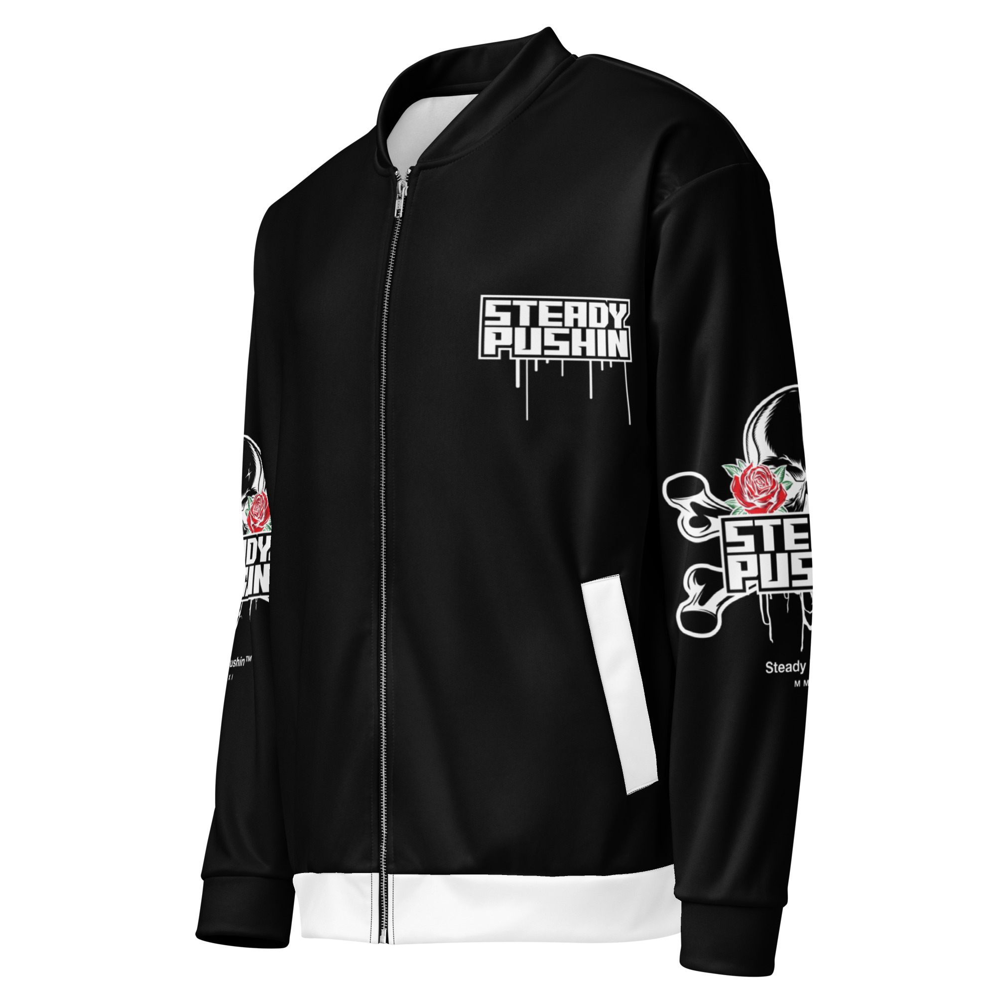 Make a statement in the Steady Pushin ™ Skull Bomber Jacket, a unisex streetwear layer built for everyday movement, comfort, and edge. Designed for those who keep going no matter what, this bomber brings together bold skull artwork, a clean black base, and the signature Steady Pushin mindset.
